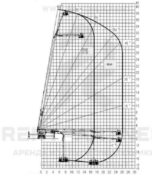 Аренда машины с таким вылетом — это единственное правильное решение для объектов, где стандартные 22–28 метровые вышки физически не достают до цели. Ключевое преимущество 40-метровой установки — это сочетание вертикального подъема с огромным горизонтальным вылетом (до 24 метров в сторону). Это позволяет работать с одной точки стоянки, обслуживая большой сектор фасада, или дотягиваться до объектов, к которым невозможно подъехать вплотную из-за заборов, газонов или пристроек.